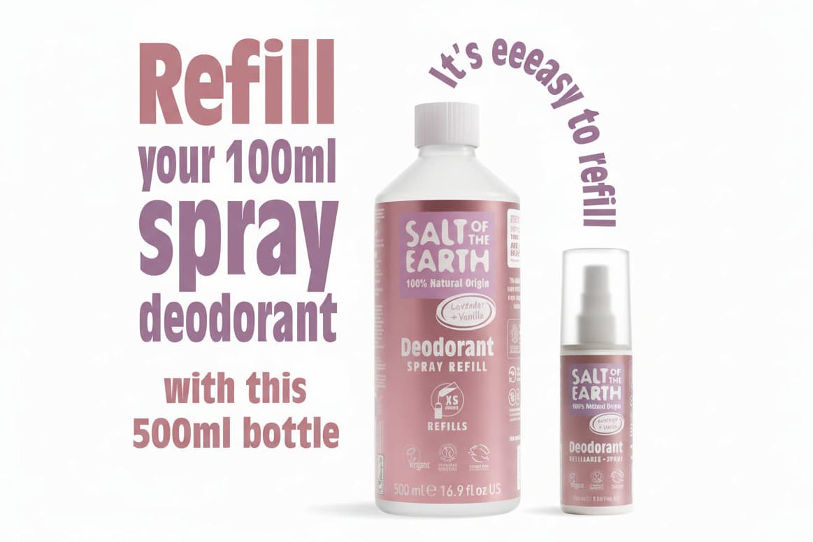 Izsmidzināmā dezodoranta papildinājums. Paredzēts 5 reizes uzpildīt „Salt of the Earth“ 100 ml izsmidzināmā dezodoranta pudeli. Pagatavots no 100% dabiskas izcelsmes sastāvdaļām - minerālsāļiem, alvejas un smaržvielām no dabīgiem augu ekstraktiem un ēteriskajām eļļām.